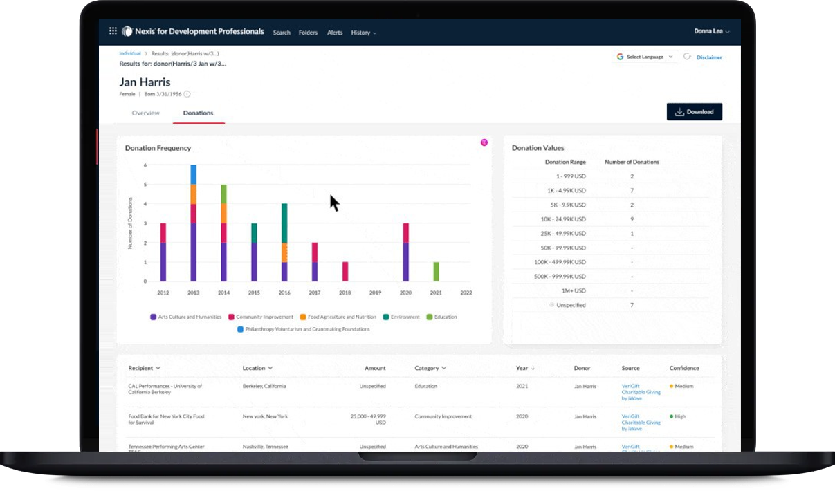 Nexis® for Development Professionals can help bring in more funds overall and increase per-donor contributions for your social nonprofit with access to vast datasets and intuitive search functionality.